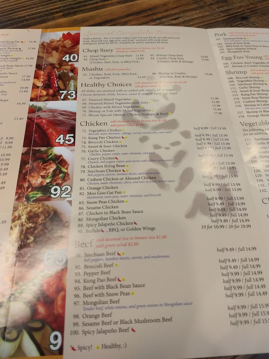 Healthy. Chicken, beef, and shrimp in Mongolian spices.